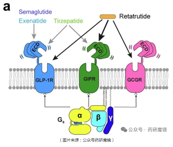 司美格鲁肽作为当前减肥药物市场的基石,当然会像PD-1里的K药一样被作为对照的“标准”。对司美格鲁肽的“迭代”,不同研发者有不同的思路,可谓是八仙过海各显神通,最常见的思路当然是从卷双靶点开始。